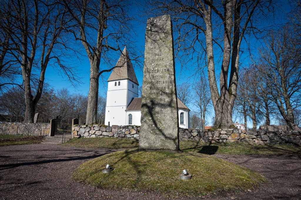 Ancestral home of the Folkung dynasty (Birger Jarl’s family). Small church and runestones.